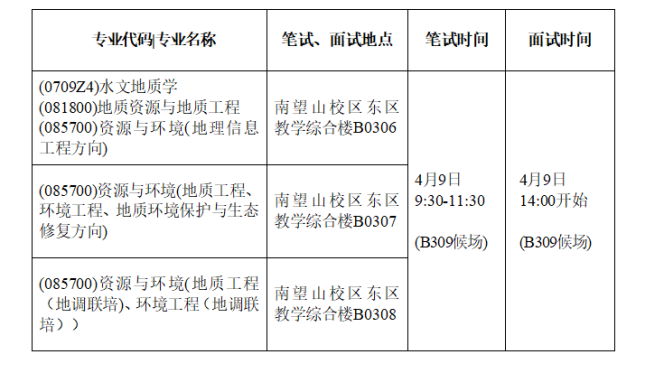 地质调查研究院调剂复试名单及复试时间地点安排如下: