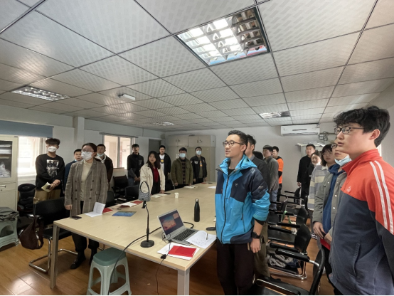 按照规定动作,全体党员齐唱国歌,会议正式开始。支部书记许艺林带领大家以政府工作报告为切入,学习2022全国两会关键点。首先应明确今年的两会是在我国进入全面建设社会主义现代化国家、向第二个百年奋斗目标进军新征程的重要时刻召开的重要会议,会议时长虽短,但内容充实精彩。