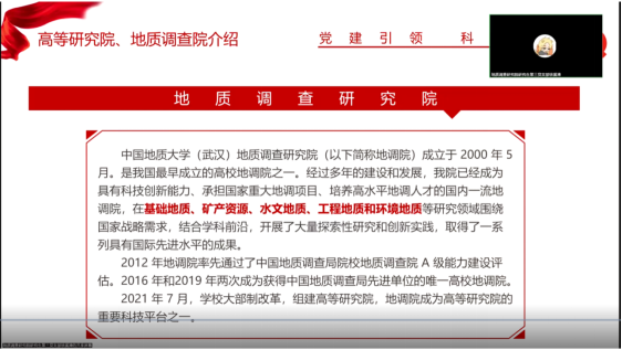 为了深刻领会党的二十大的丰富内涵和精神实质,准确把握党的二十大关于科教兴国战略的目标要求,在加强党的建设的同时加强团的建设,构建本硕学术交流平台,特举行本次“党建引领 科研助力”本研联合主题党建交流活动。本次活动由地质调查研究院研究生第三党支部主办,通过腾讯会议线上进行,环境学院2022级全体学生、地质调查研究院2021级、2022级硕士研究生参会。会议由地质调查研究院研究生第三党支部副党支书徐溪清主持。