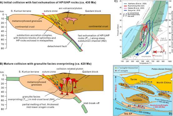青藏高原北部的东昆仑造山带记录了原特提斯洋东北部的长期增生和碰撞历史,对重建早古生代东亚的古地理非常重要。尽管进行了数十年的岩浆岩和变质岩研究,但对该地区榴辉岩的构造亲缘性、俯冲和出露机制、造山过程以及原特提斯洋北部支洋的演化仍然存在争议。